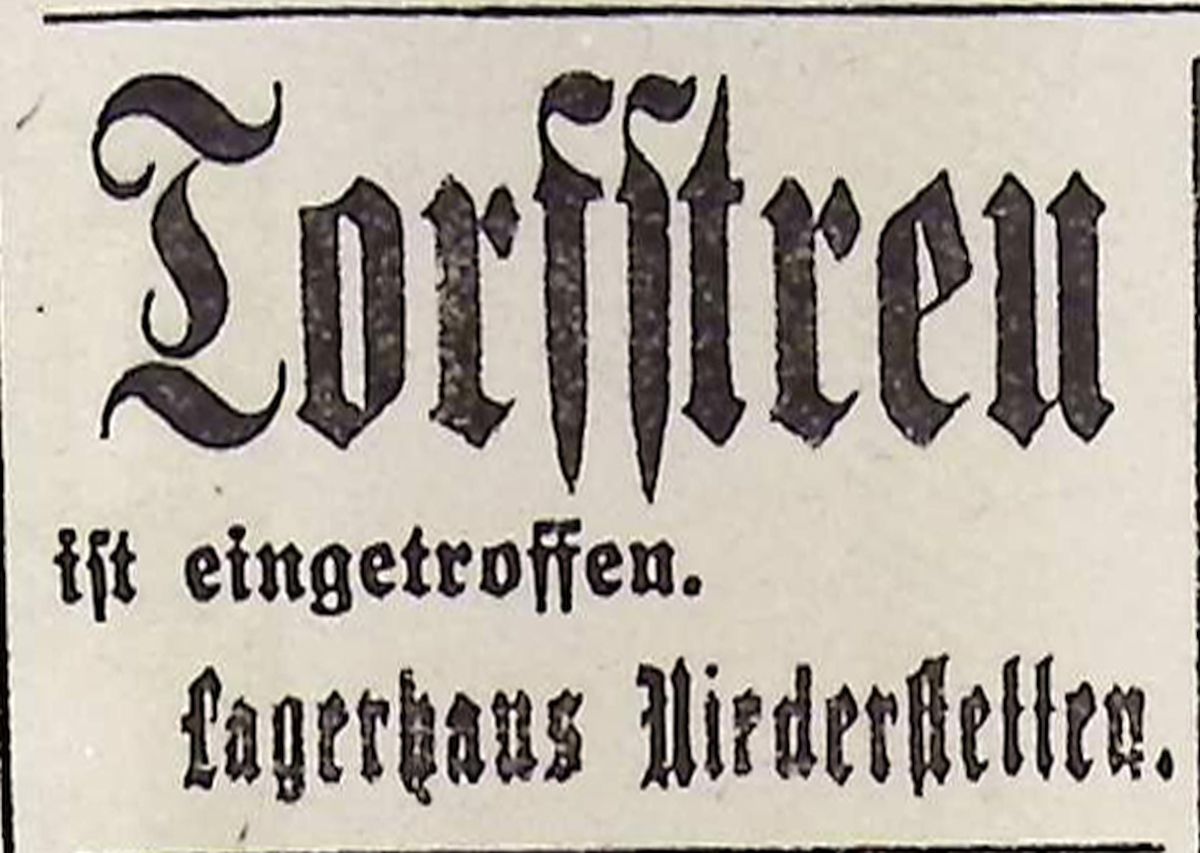 5. April 1924. Anzeige Lagerhaus verkauft Torfstreu