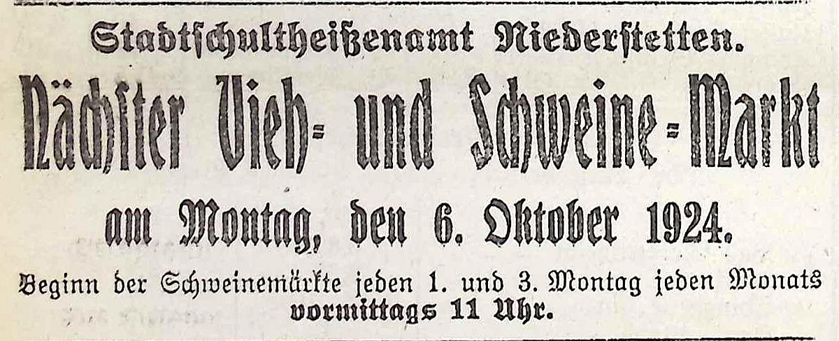 25. September 1924. Anzeige Vieh- und Schweine-Markt