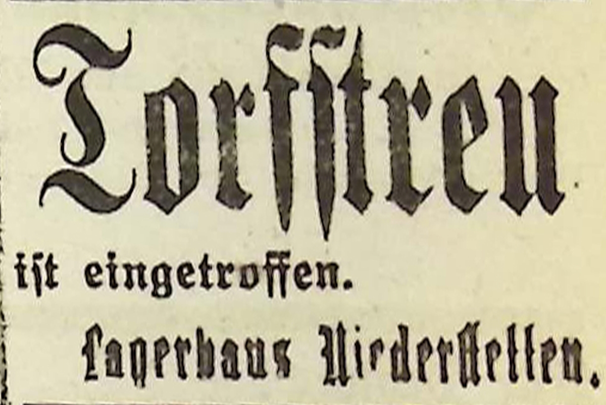 1. April 1924. Anzeige. Lagerhaus verkauft Torfstreu