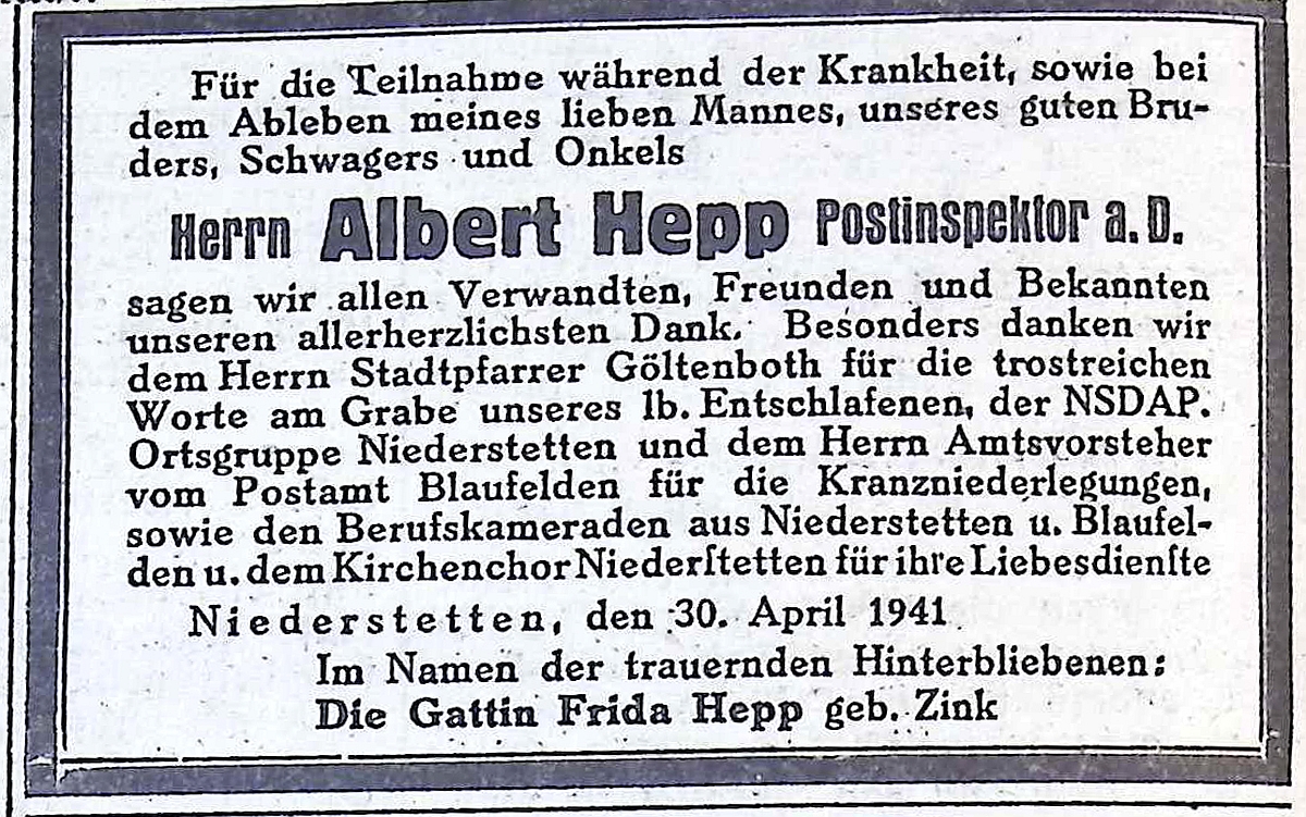 Nächster Beitrag: 2. September 1941. Todesanzeige Otto Kleinhanß