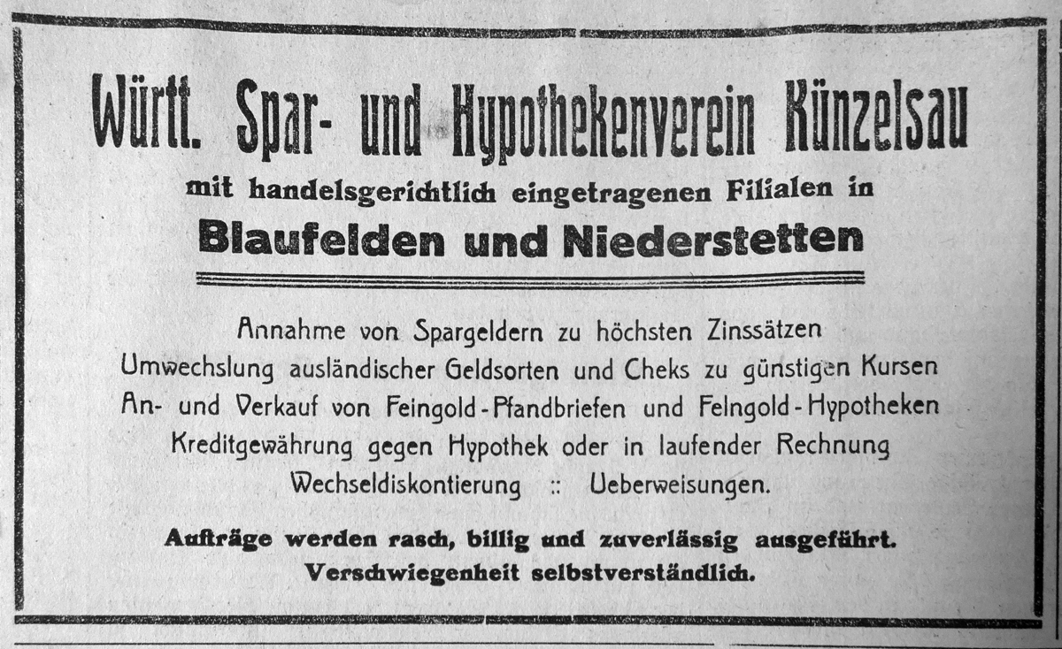 5. Januar 1928. Anzeige Württ. Spar- u. Hypothekenverein