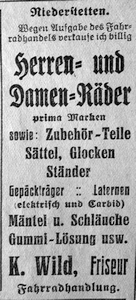 12. Mai 1928. Anzeige Karl Wild verkauft Herren- und Damenräder