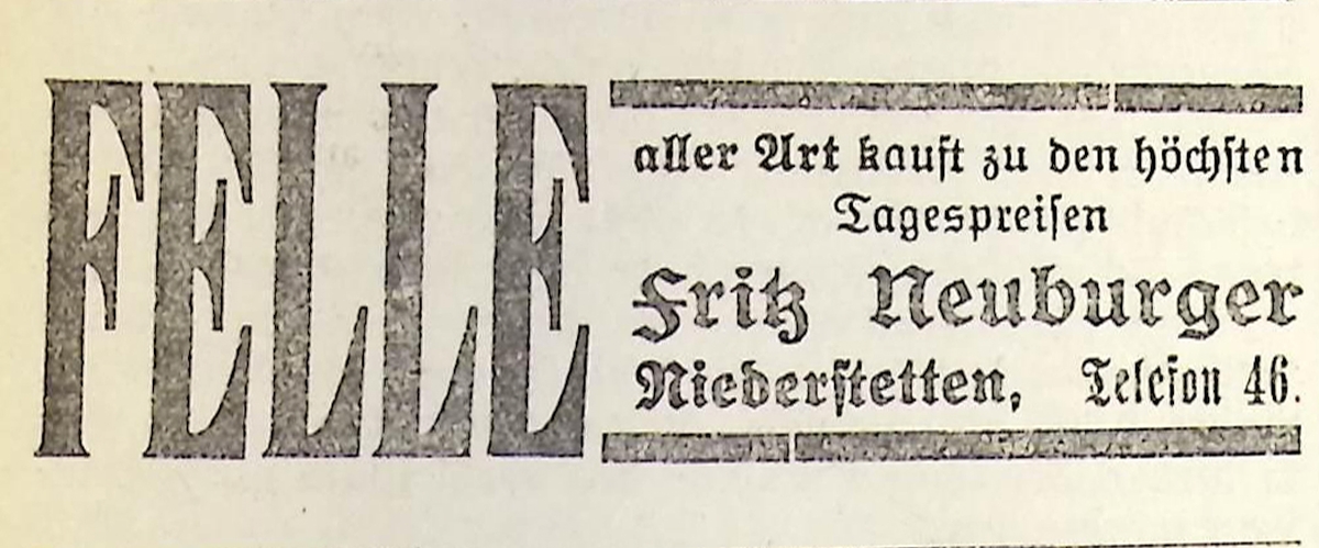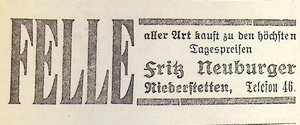 20. Januar 1924. Anzeige Fritz Neuburger kauft Felle