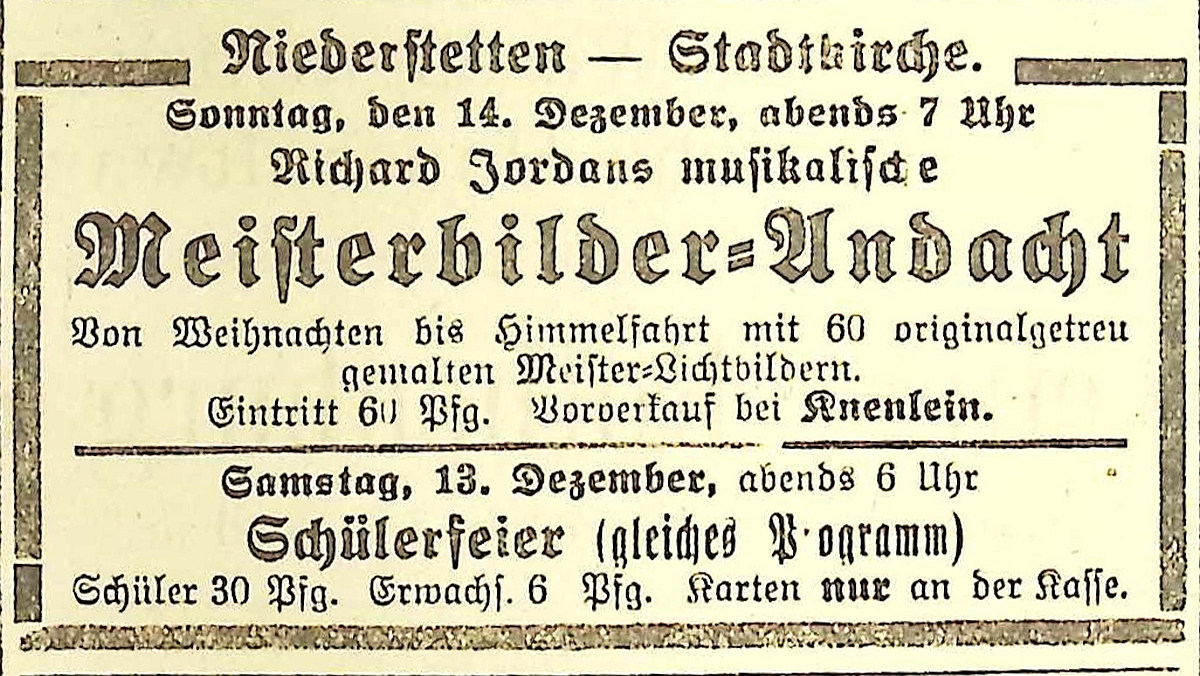 12. Dezember 1924. Anzeige Meisterbilder-Andacht