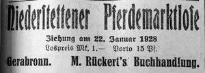 8. Januar 1928. Anzeige Niederstettener Pferdemarktlose
