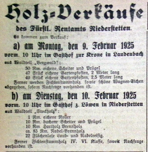 5. Februar 1925. Fürstl. Rentamt verkauft Holz