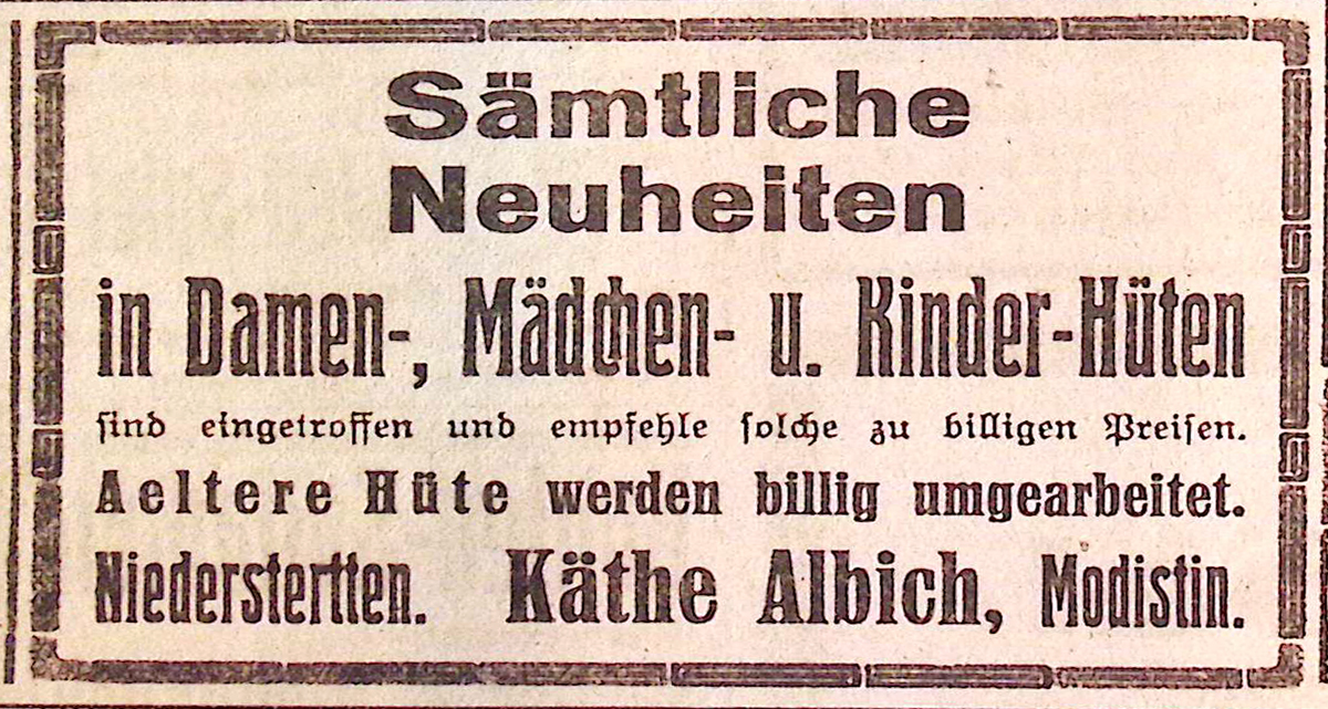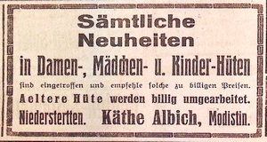 25. April 1925. Anzeige Käthe Albich verkauft Hüte