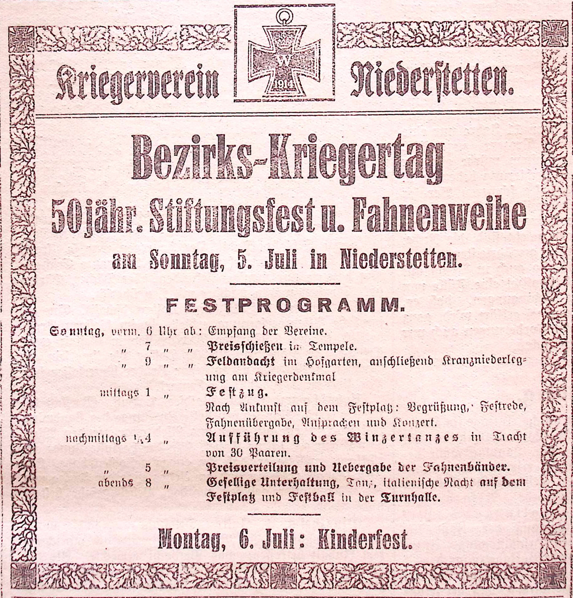 3. Juli 1925. Anzeige Bezirks-Kriegertag