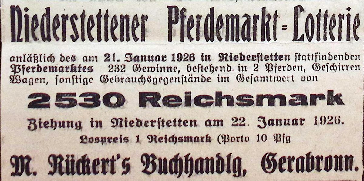 23. Dezember 1925. Anzeige Pferdemarktlotterie