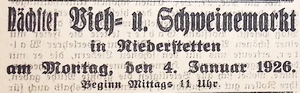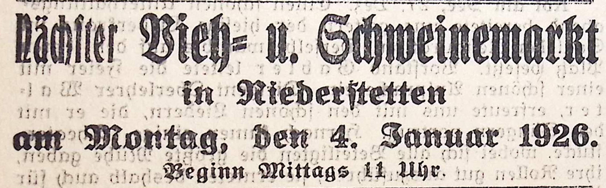 29. Dezember 1925. Anzeige Vieh- und Schweinemarkt