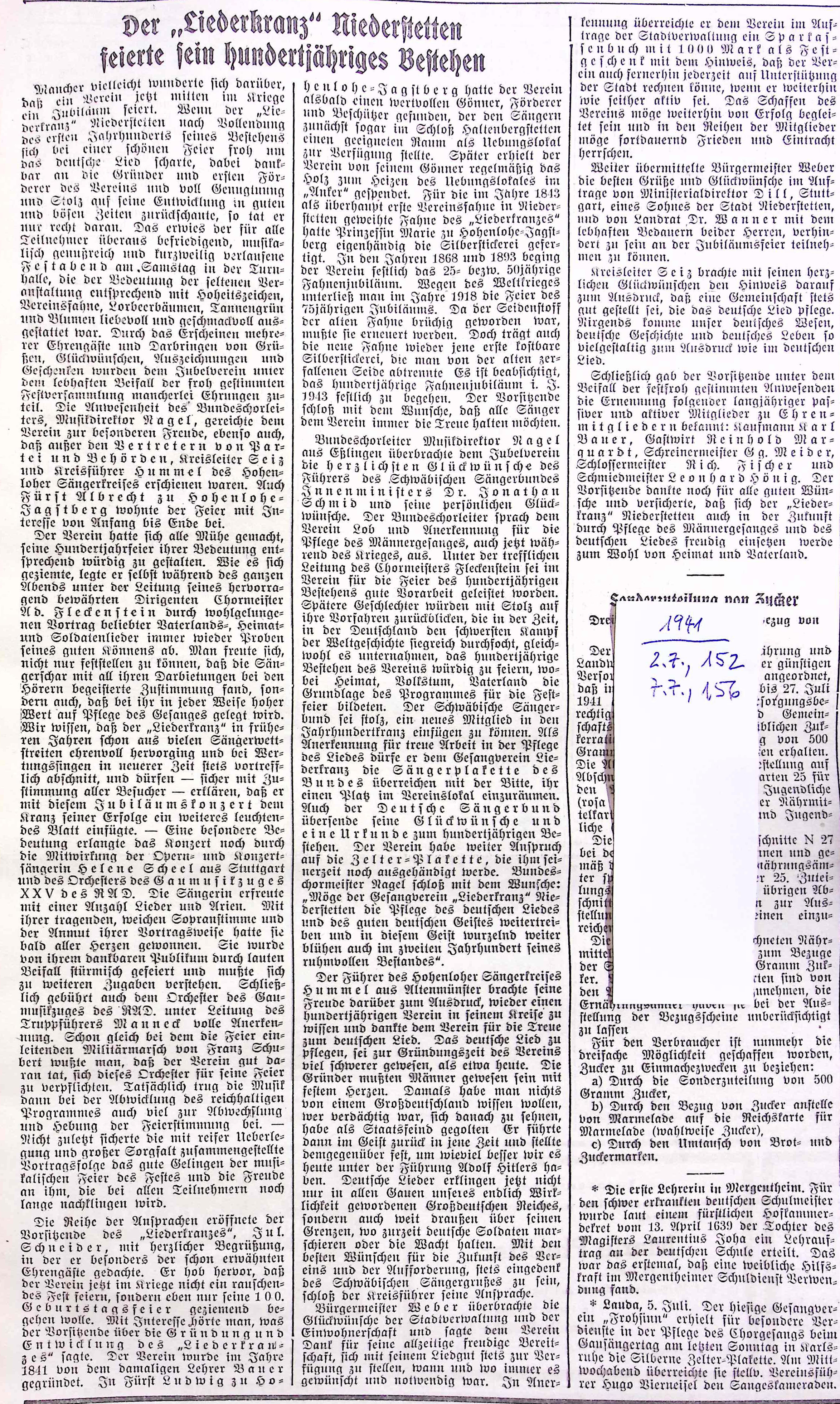 7. Juli 1941. 100jähriges Jubiläum des "Liederkranz"