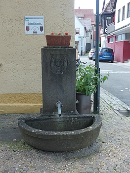 Nachdem der von Wilhelm Bernheim 1927 gestiftete "Heimatbrunnen" als das Ortsbild verschandelnd angesehen wurde, wurde er 1939 durch diesen Brunnen ersetzt: