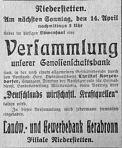 12. April 1929. Anzeige Vortrag "Deutschlands wirtschaftliche Kraftquellen"