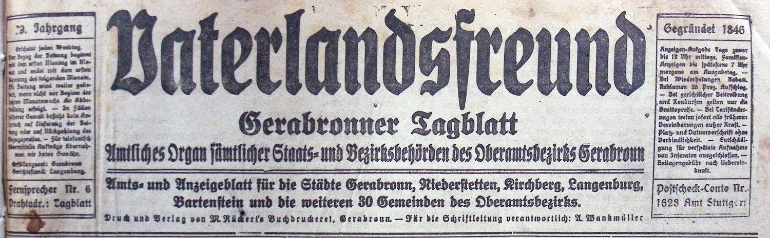 Vaterlandsfreund, Jahrgang 1925, Kopftitel