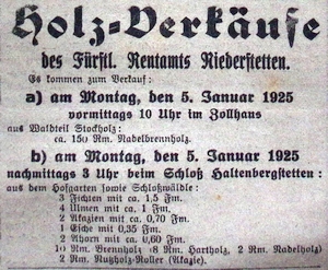 1. Januar 1925. Fürstl. Rentamt verkauft Holz