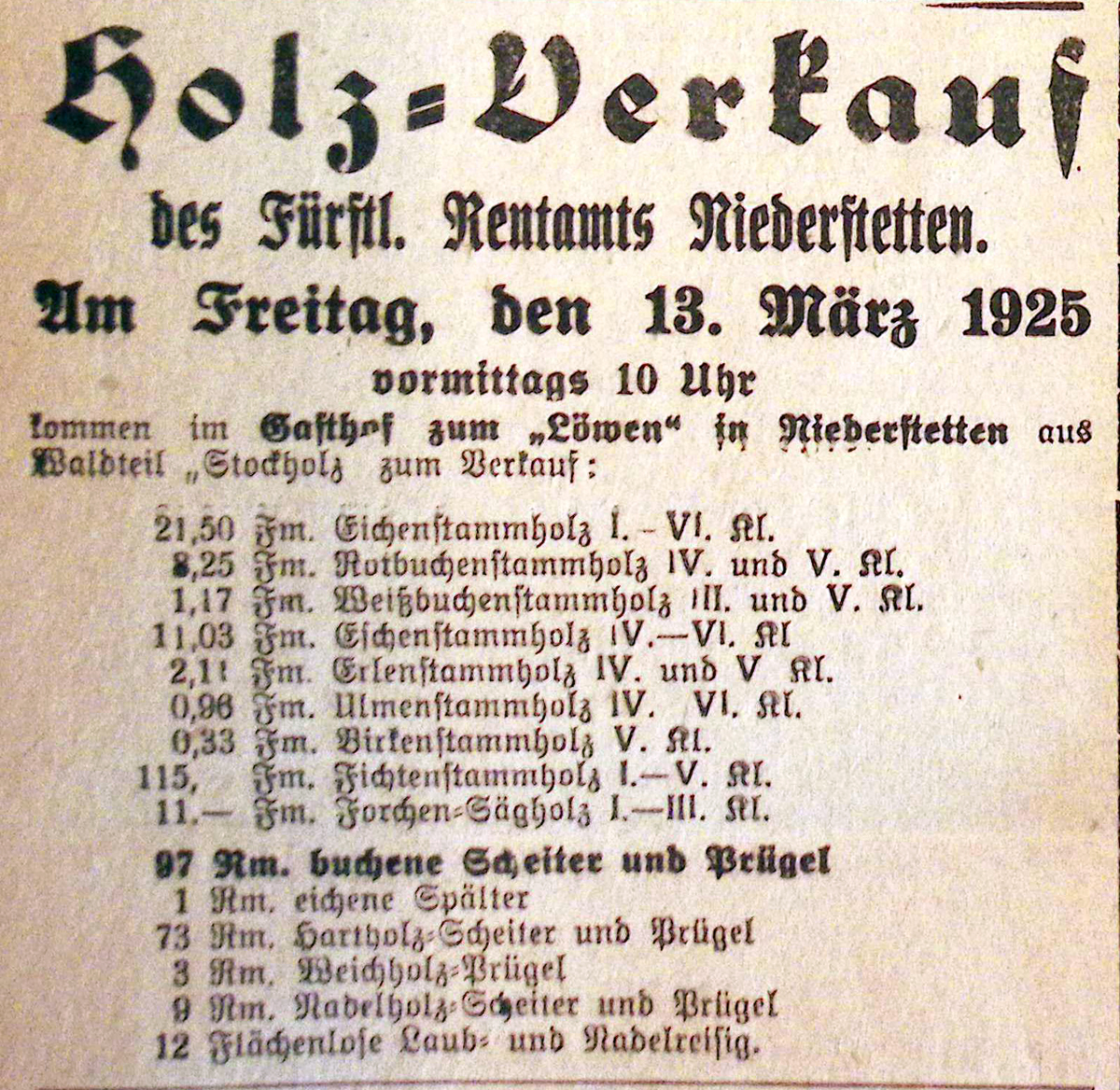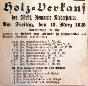 11. März 1925. Fürstl. Rentamt verkauft Holz