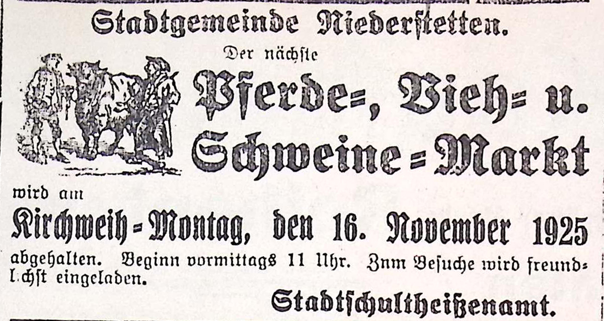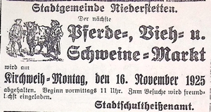 13. November 1925. Anzeige Pferde-, Vieh- und Schweinemarkt
