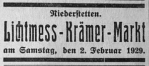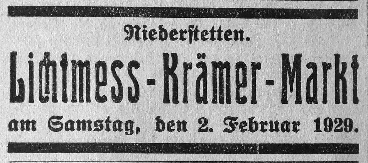 30. Januar 1929. Anzeige Lichtmeß-Krämer-Markt