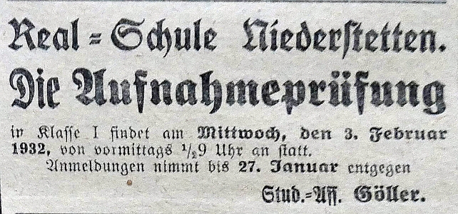 19. Januar 1932. Aufnahmeprüfung für die Real-Schule
