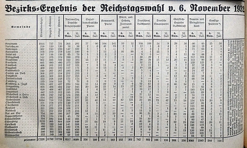 7. November 1932. Ergebnis der Reichstagswahl vom 6. November