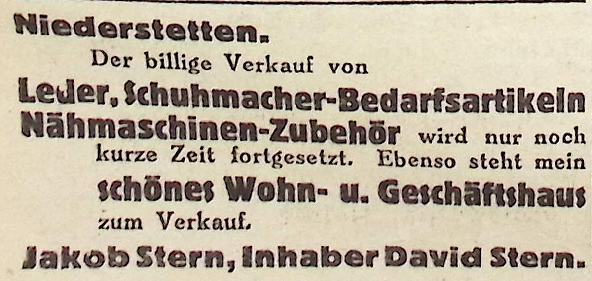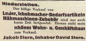 6. März 1933. Anzeige Jakob Stern, Verkaufsartikel und Wohn- und Geschäftshaus