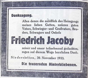1. Dezember 1933. Danksagung Friedrich Jacoby