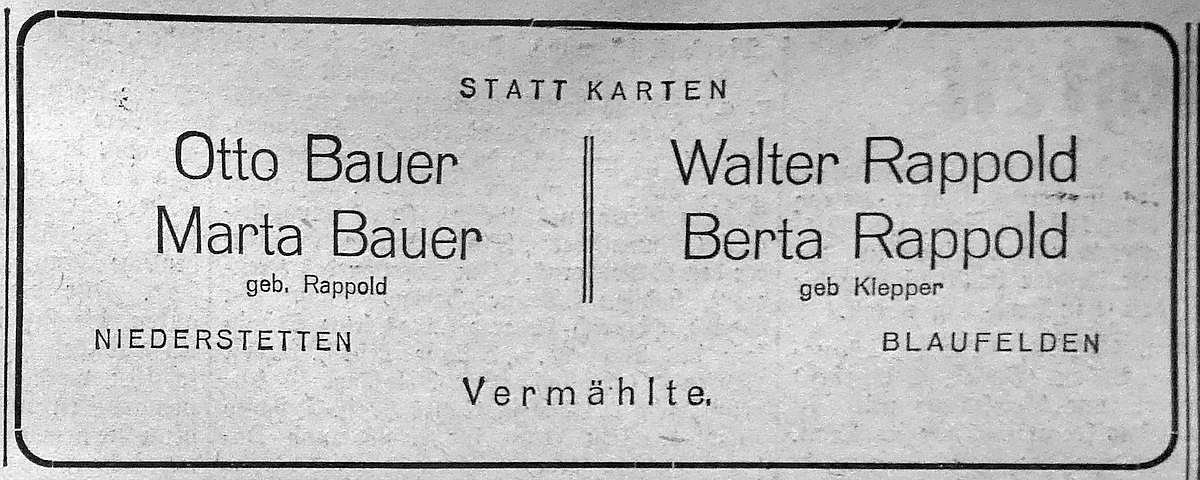 17. Oktober 1936. Heiratsanzeige Otto und Maria Bauer