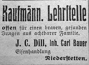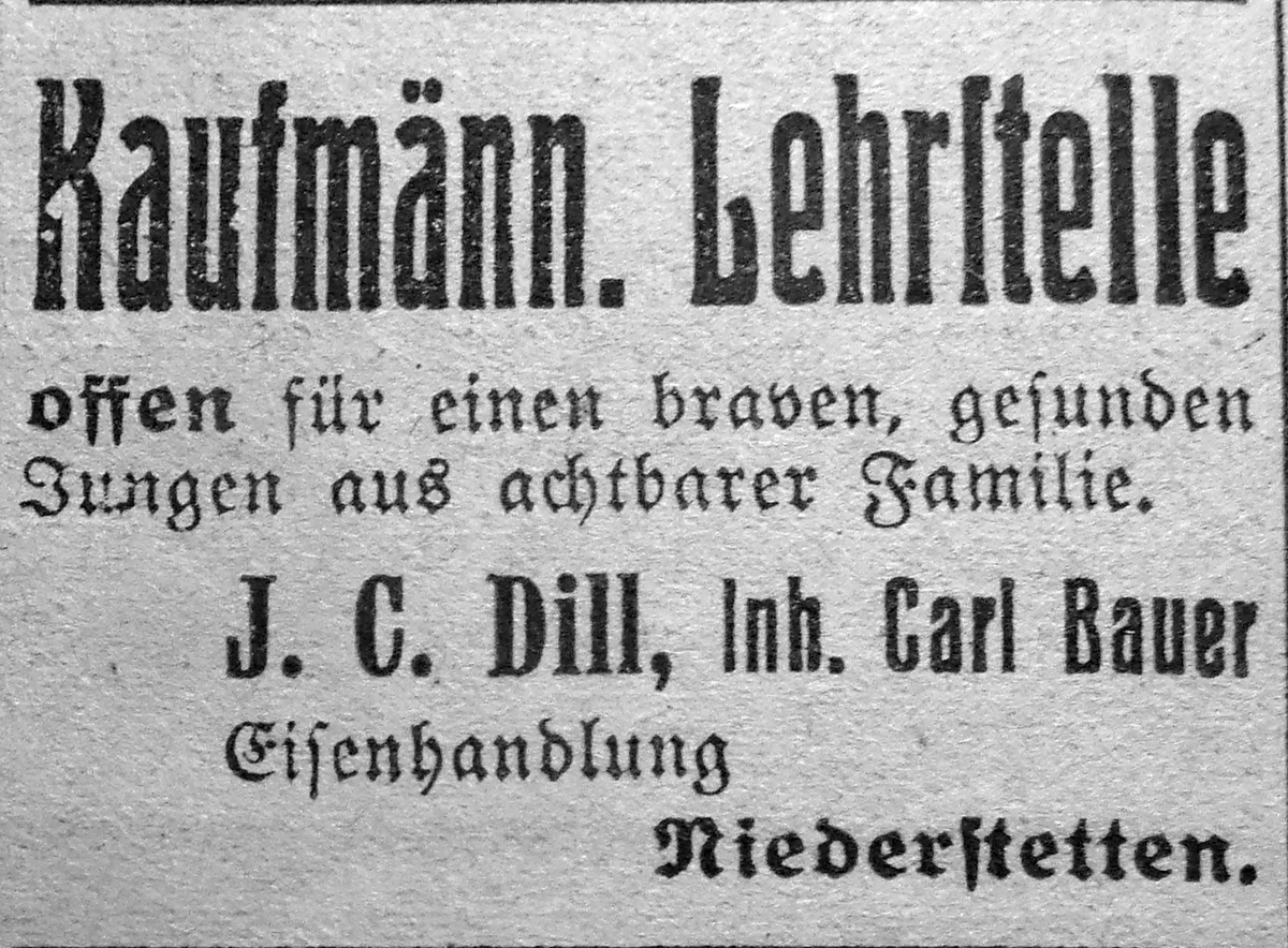 30. Januar 1937. Anzeige J. C. Dill bietet kaufm. Lehrstelle