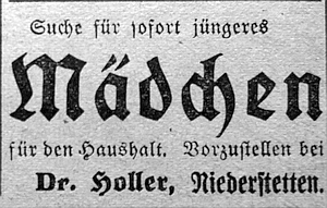 Nächster Beitrag: 4. September 1937. Anzeige dr. Holler sucht "Mädchen"