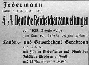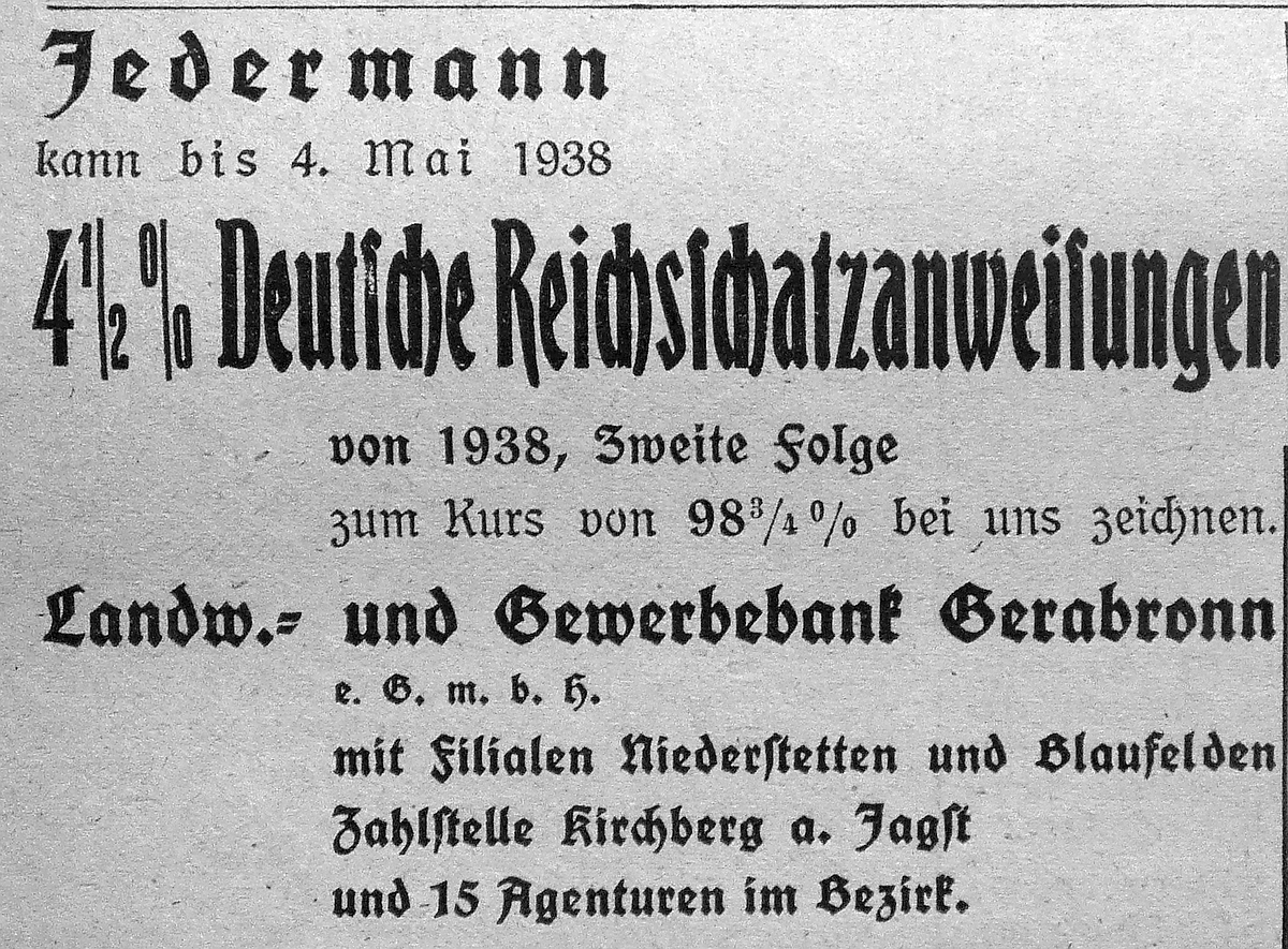 21. April 1938. Anzeige Landwirtschafts- u. Gewerbebank