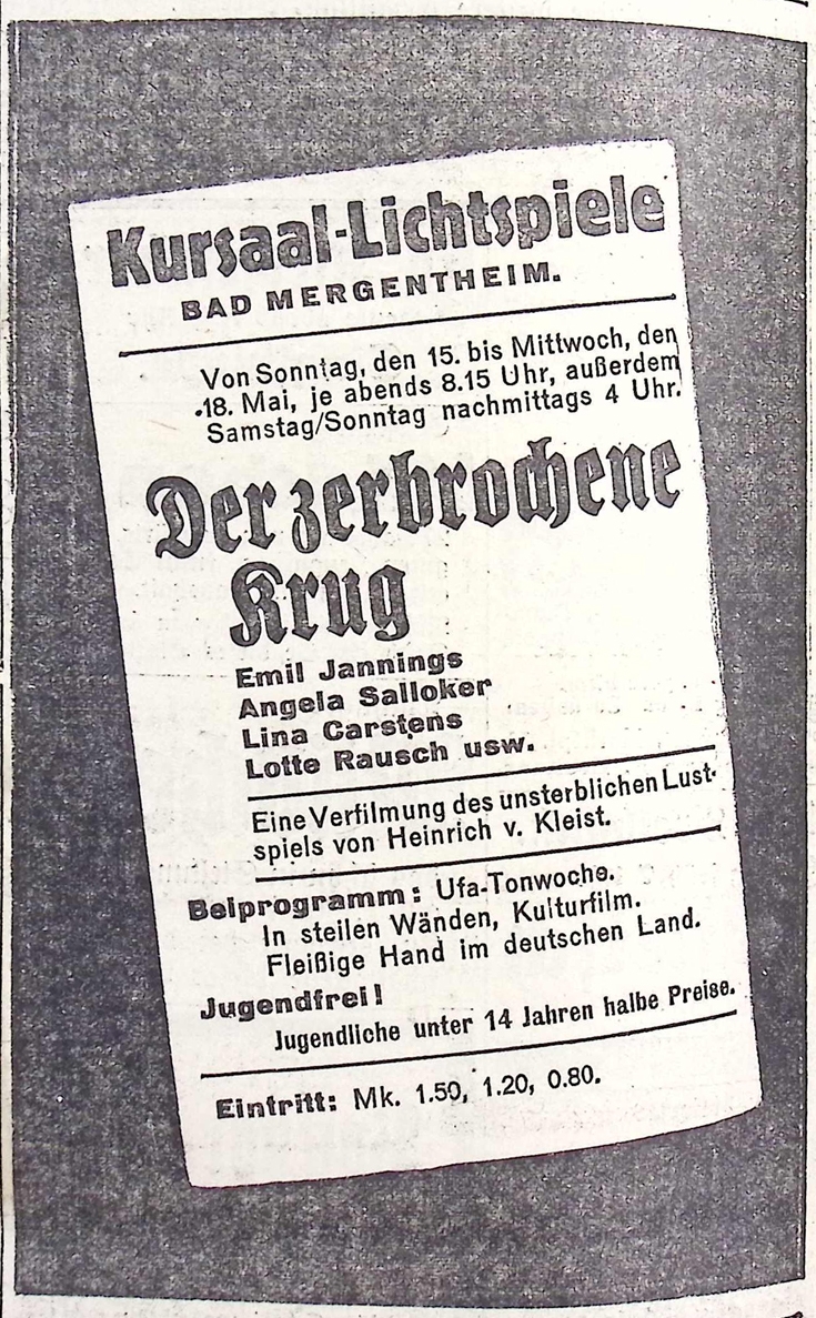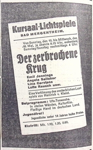 13. Mai 1938. Der zerbrochene Krug im Kino Bad Mergentheim