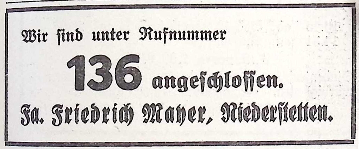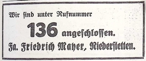 17. Mai 1938. Anzeige Telefonanschluß Fa. Friedrich Mayer