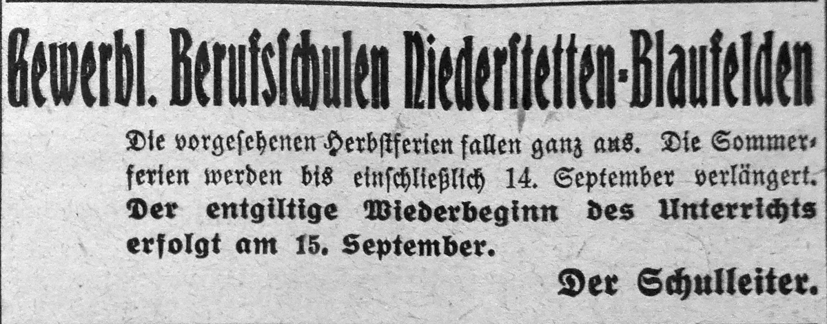 Vorheriger Beitrag: 3. September 1938. Anzeige Gewerbliche Berufsschulen