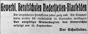 3. September 1938. Anzeige Gewerbliche Berufsschulen