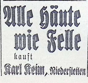 8. Februar 1939. Anzeige Karl Keim kauft Häute und Felle