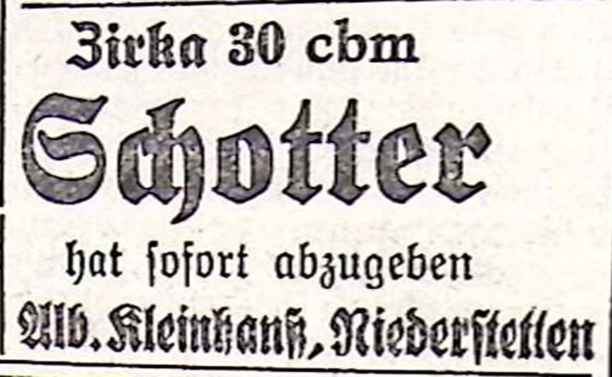 31. Mai 1939. Anzeige Albert Kleinhanß verkauft Schotter