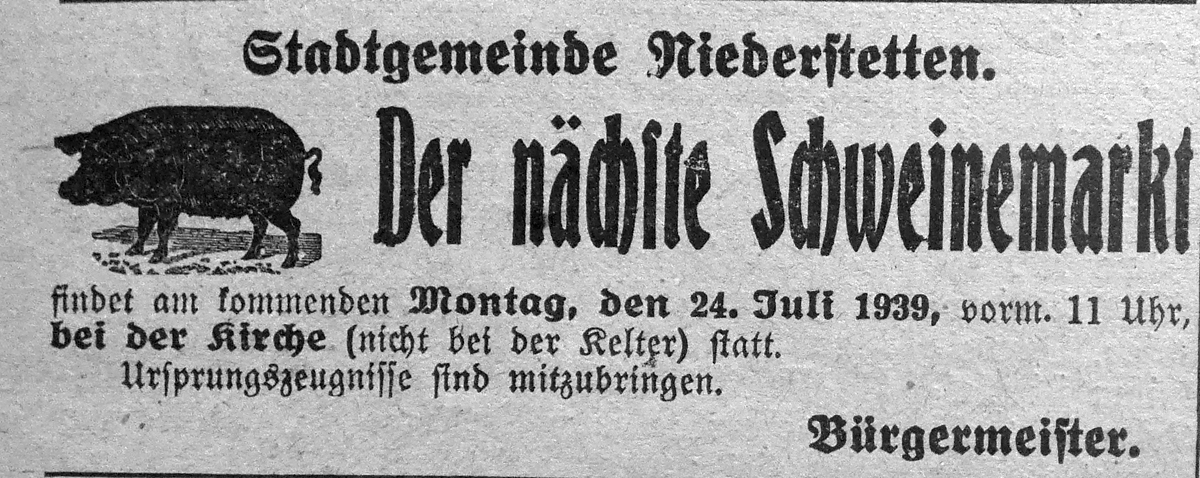 Vorheriger Beitrag: 22. Juli 1939. Anzeige Schweinemarkt