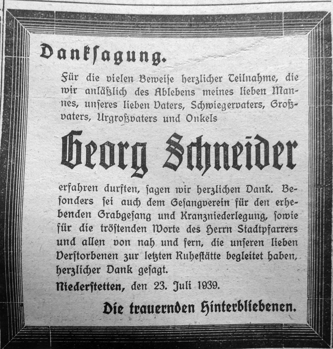 Vorheriger Beitrag: 24. Juli 1939. Danksagung Georg Schneider