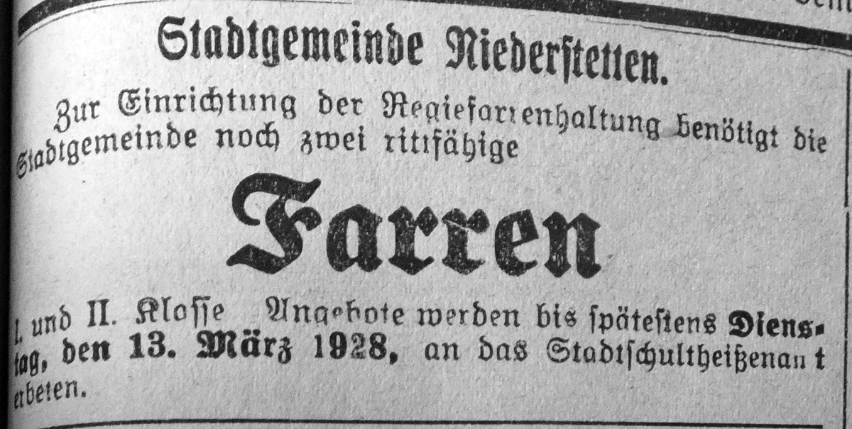 10. März 1928. Rittfähige Farren gesucht