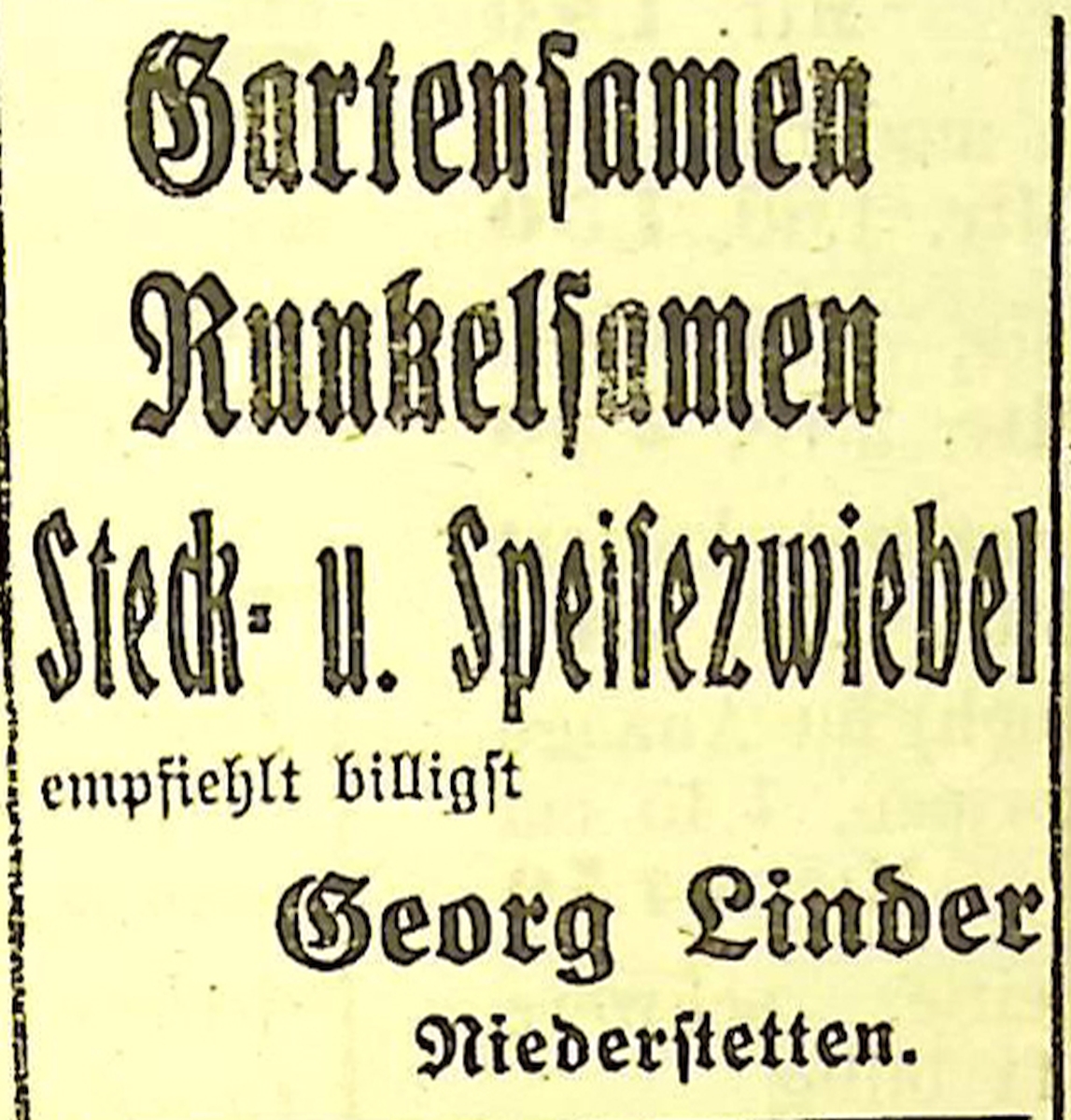 17. April 1924. Anzeige Georg Linder verkauft Samen und Zwiebel