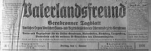Vaterlandsfreund, Jahrgang 1926, Kopftitel